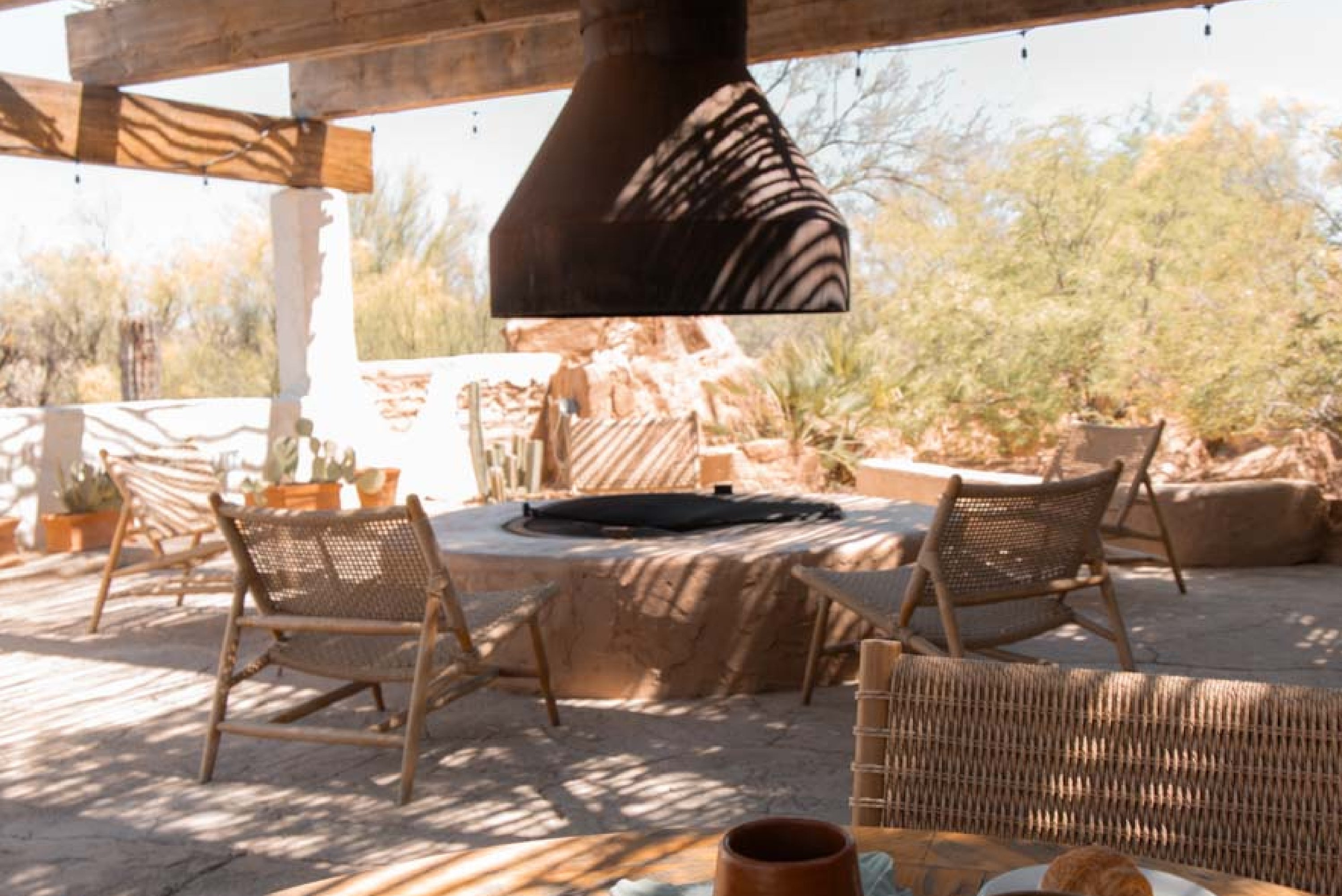 We currently live on site at our small inn, JTH Tucson. The inn has many shared living spaces, but the outdoor living spaces have got to be our favorite—we have had some of the most magical evenings with friends and family sitting around the outdoor firepit, or swimming in the canyon pool.