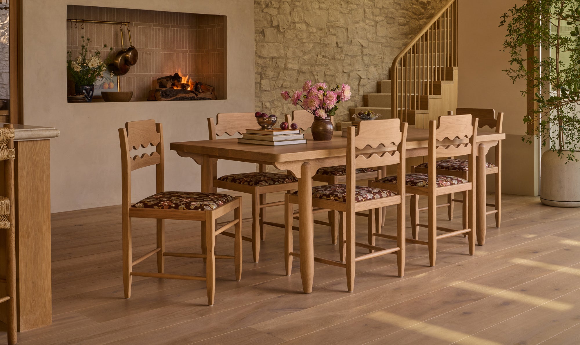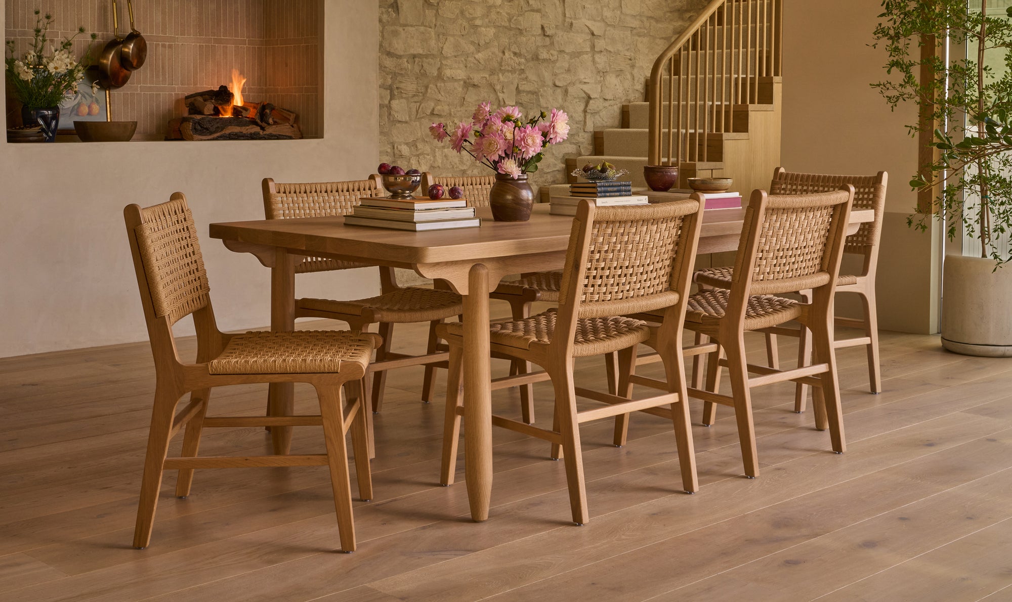 Designed for gathering and lingering with our White Oak seating. Available in two lengths to accommodate six or eight dining chairs.