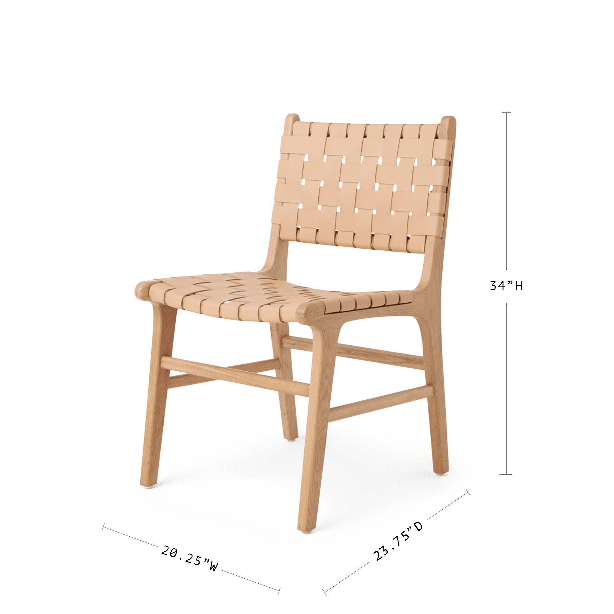 Ease into our mid-century Scandinavian-inspired dining chair with a modern laid-back vibe. The Dining #1 chair in natural is made from solid white oak and treated to a striking neutral finish. The full-grain leather is vegetable-tanned, highlighting the natural texture of the hide while reducing our environmental footprint. The leather is finished with an anti-UV topcoat to protect against discoloration and stains.