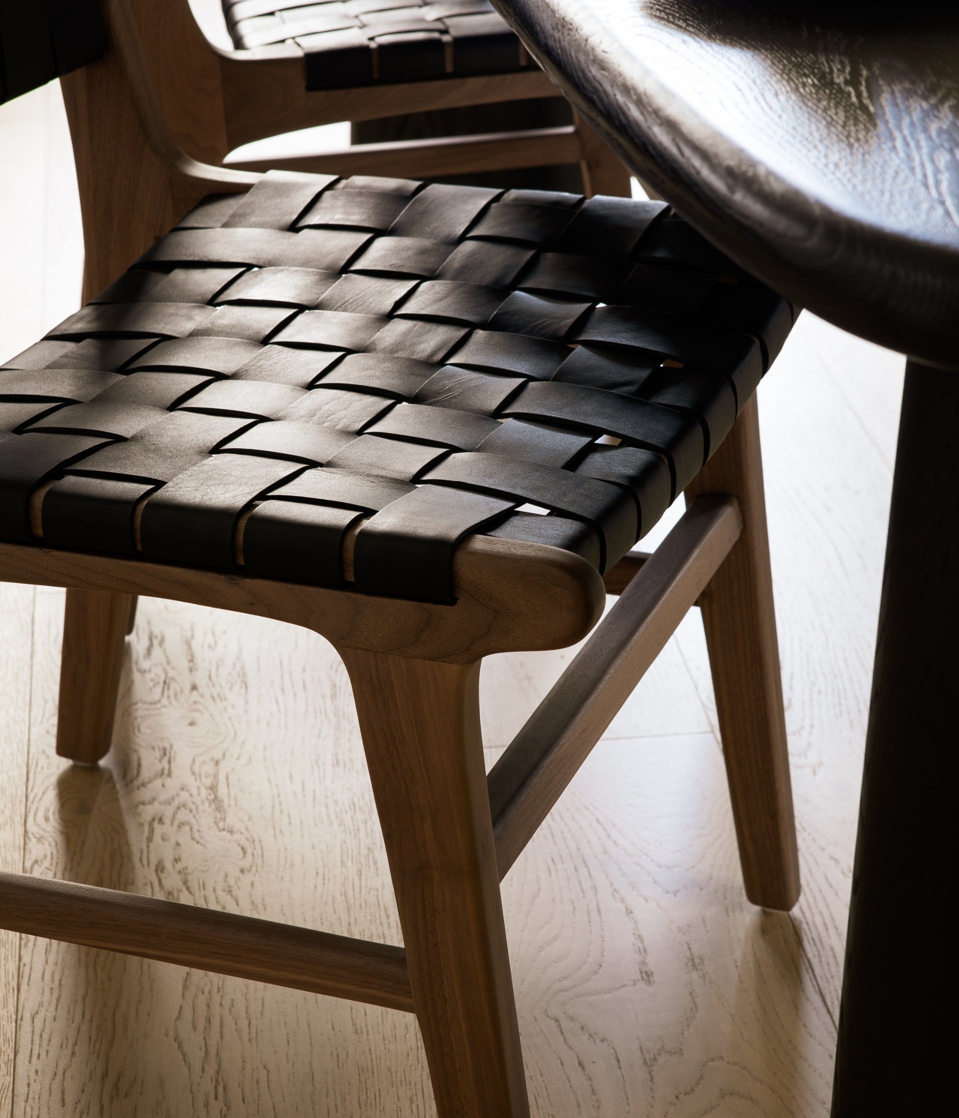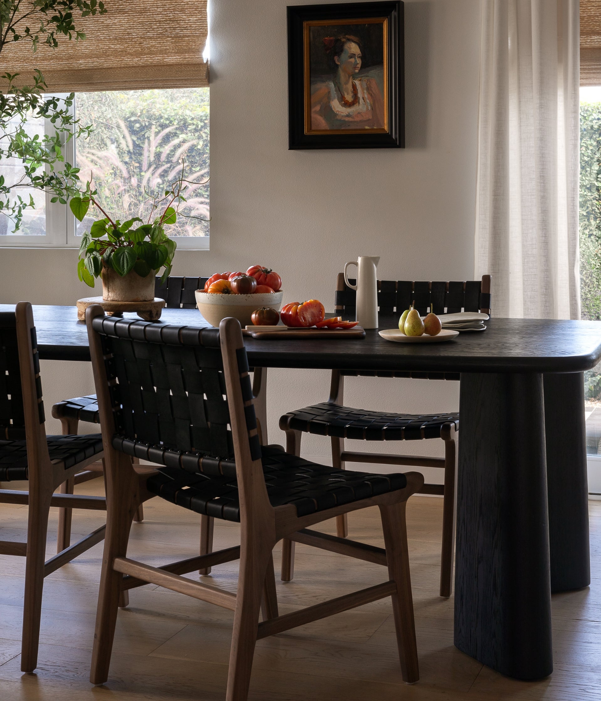 Ink is our most stain-resistant leather shade. Ideal as a dining set, breakfast nook centerpiece, or statement office chair.