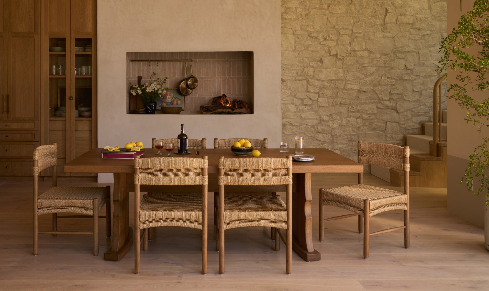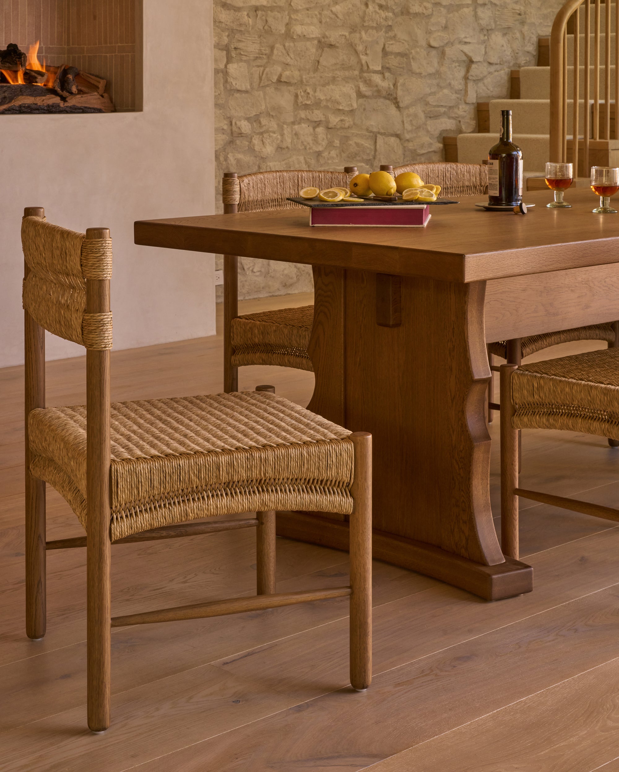 A calm center for the heart of the home. Crafted from solid oak, the Etta Trestle Table blends traditional character with modern softness—violin-like curves, rounded feet, and a warm Honey Oak finish. A wide center stretcher subtly conceals chairs opposite for a cleaner look. Designed for effortless gathering and easy pairing with our Honey Oak seating. Available in two lengths to accommodate six or eight dining chairs.