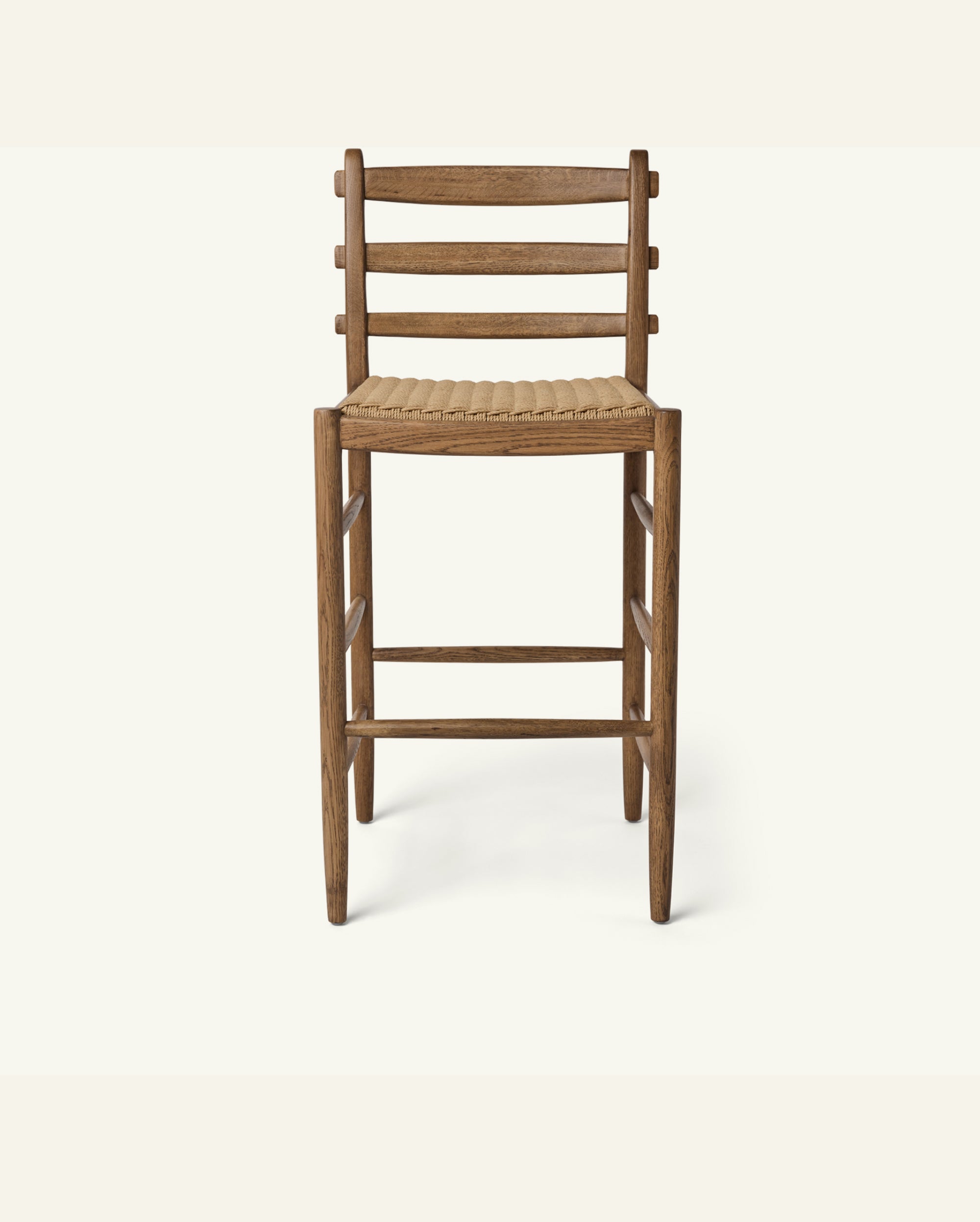 The warm Honey Oak finish adds timeless character to any dining space. This stool is customizable with either a classic Danish paper cord seat showcasing a woven pattern that is both durable and designed to minimize sagging, or an upholstered seat in your choice of performance linen or customer own material (COM).