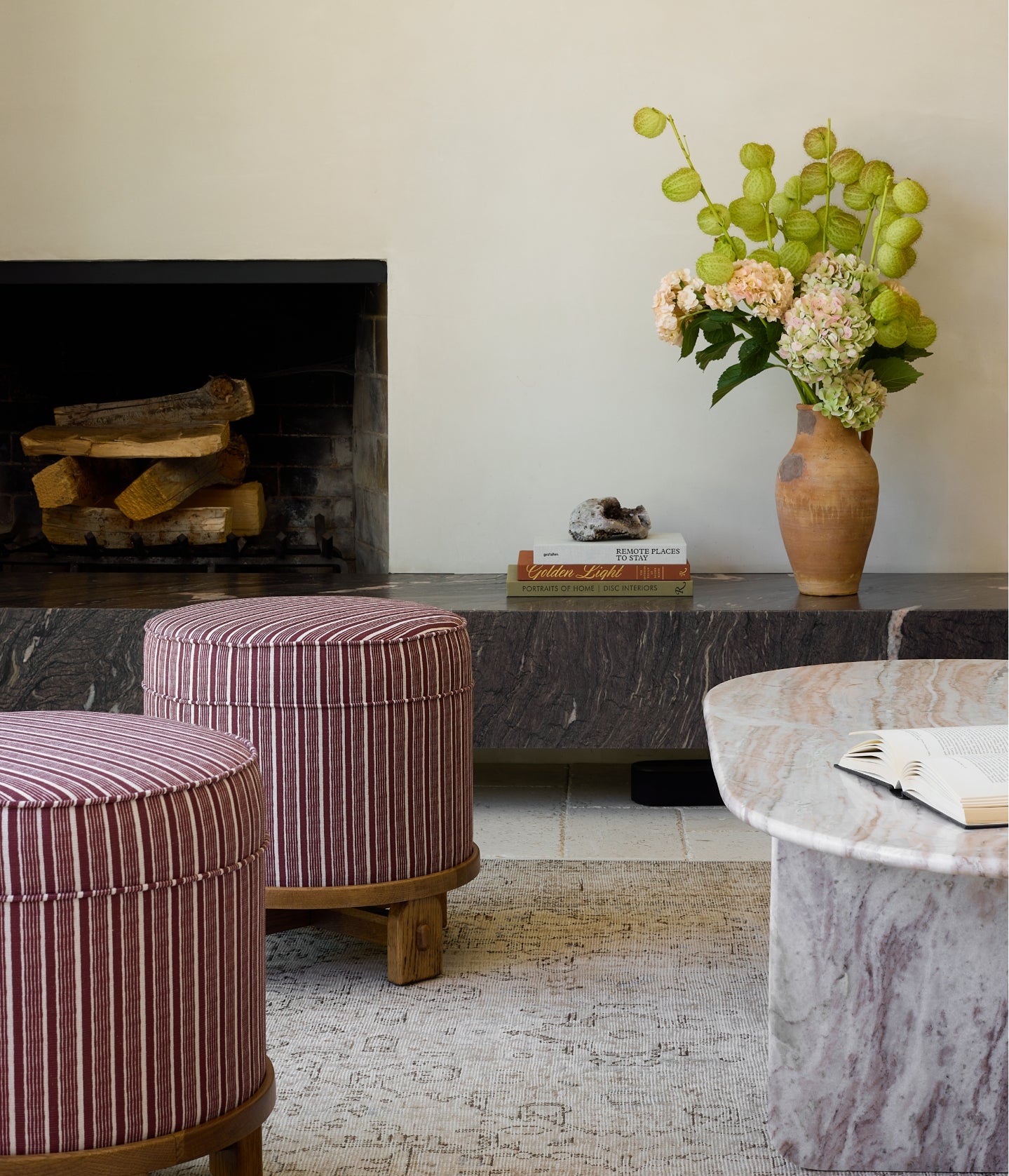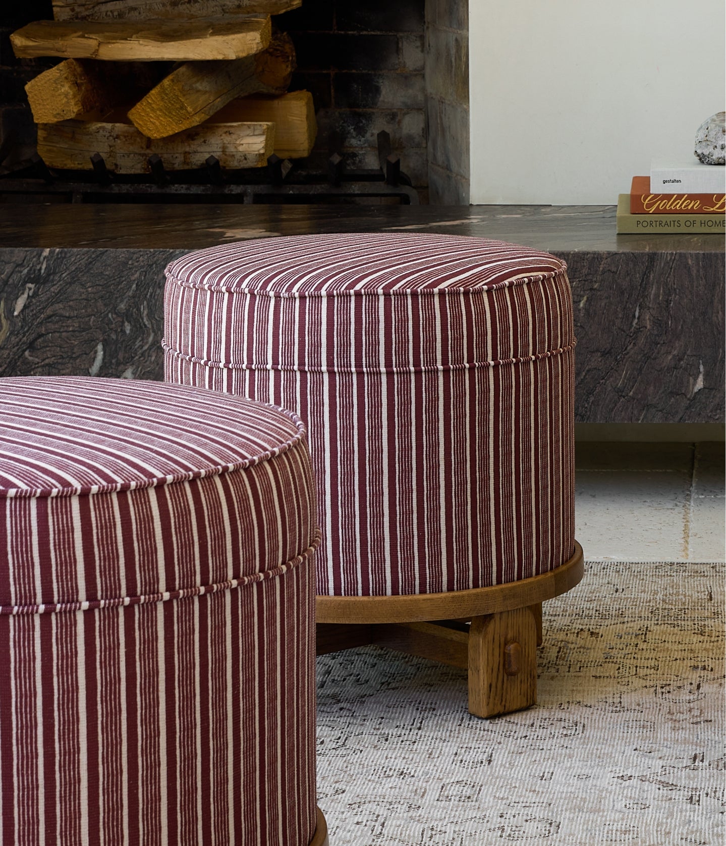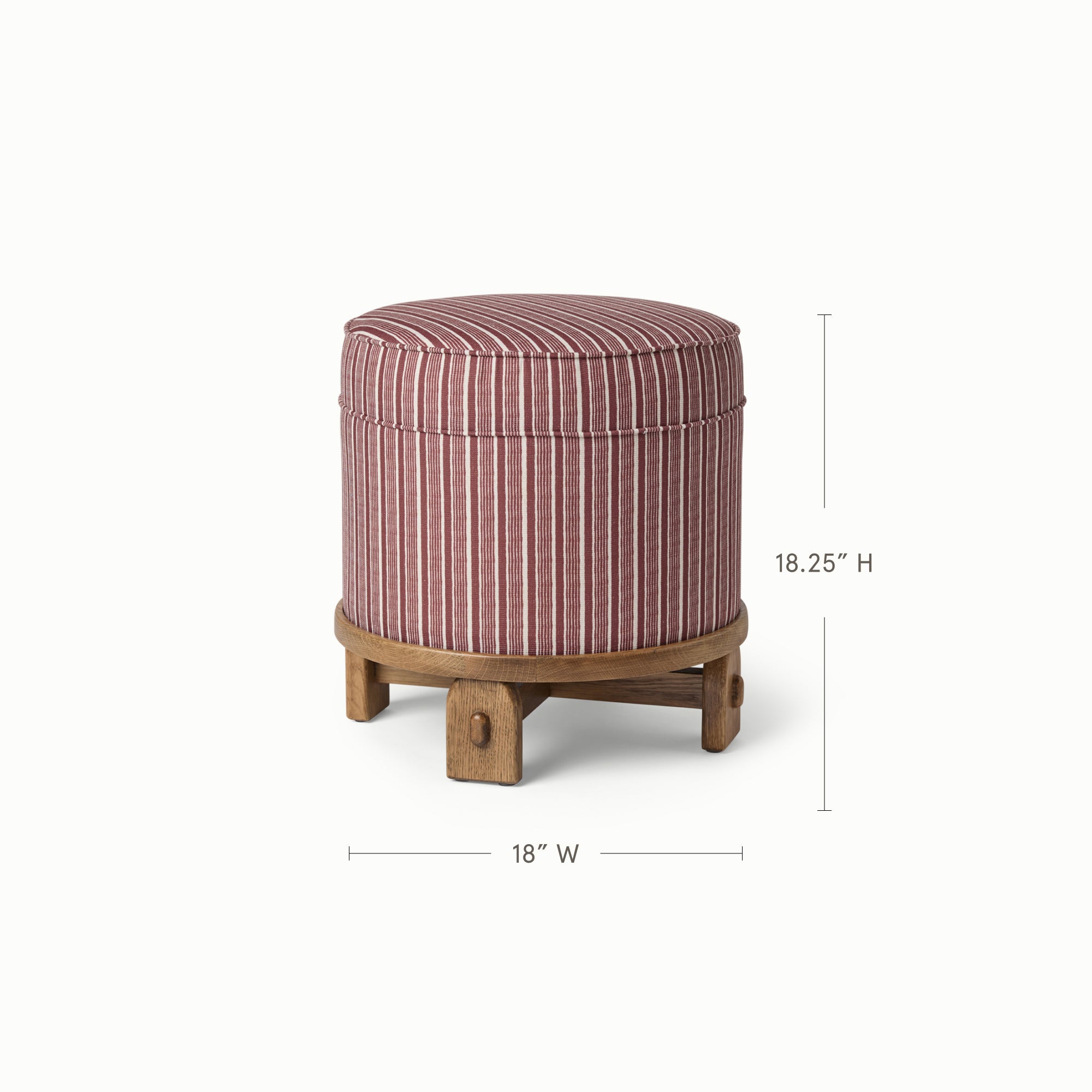 A cozy ottoman that brings softness and versatility to any space. Upholstered in your choice of Cleobella’s signature performance fabrics, it sits atop a sculptural solid oak base with a warm honey finish and artisan joinery details. Use it as a footrest, an accent seat, or a cozy touch at the foot of the bed—this is comfort with personality.
